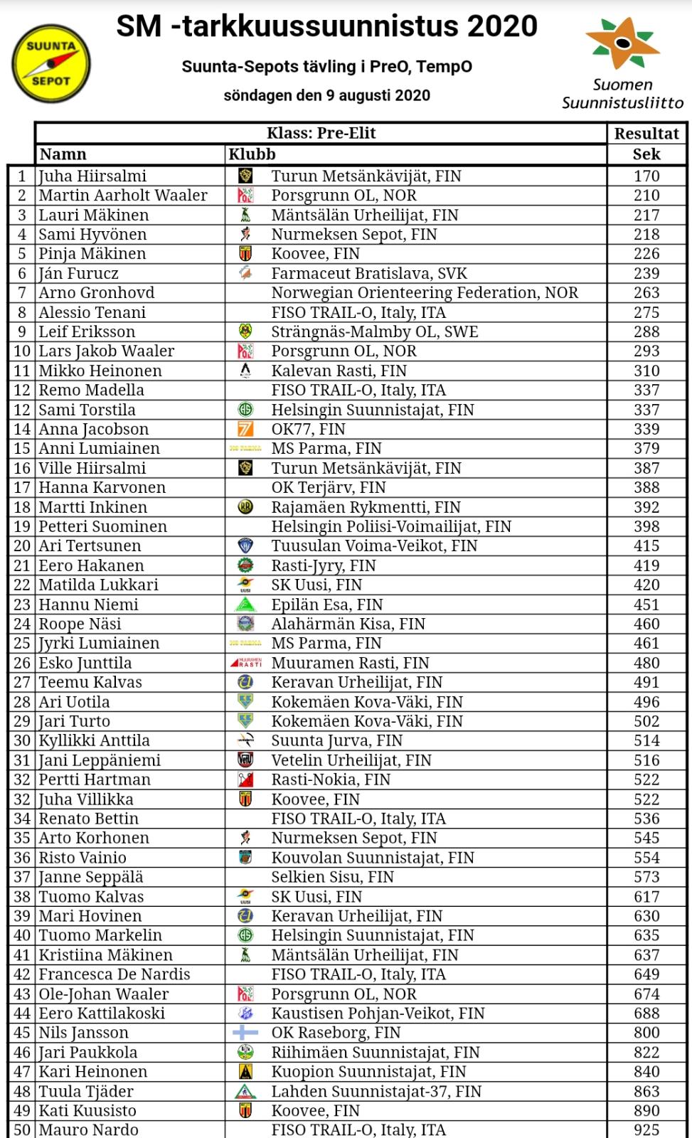 La nazione finlandese è una delle prime al mondo nel Trail-O ed il livello di gara era altissimo. Per questo motivo ottenere un piazzamento non era semplice. Gli azzurri rientreranno in Italia domani mattina.
