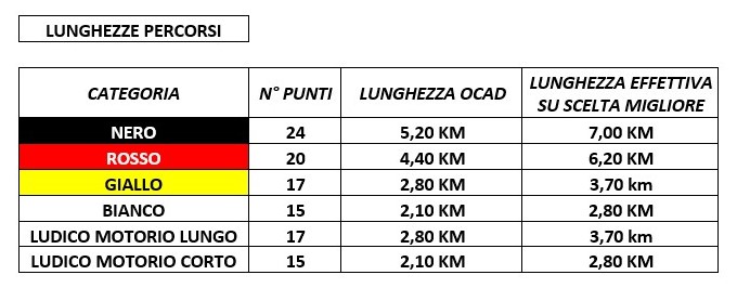 Categoria Esordienti = Percorso Ludico Corto - Categoria Esordienti Lungo = Percorso Ludico Lungo