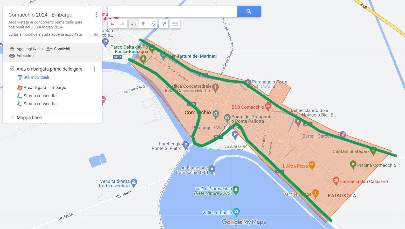 LUOGO Comacchio - Trepponti (FE) | NOTE Aree embargate e strade consentite: https://www.google.com/maps/d/u/0/edit?mid=1B6EmNb9ix979yFAz6YiA6UPAeSa8vbg