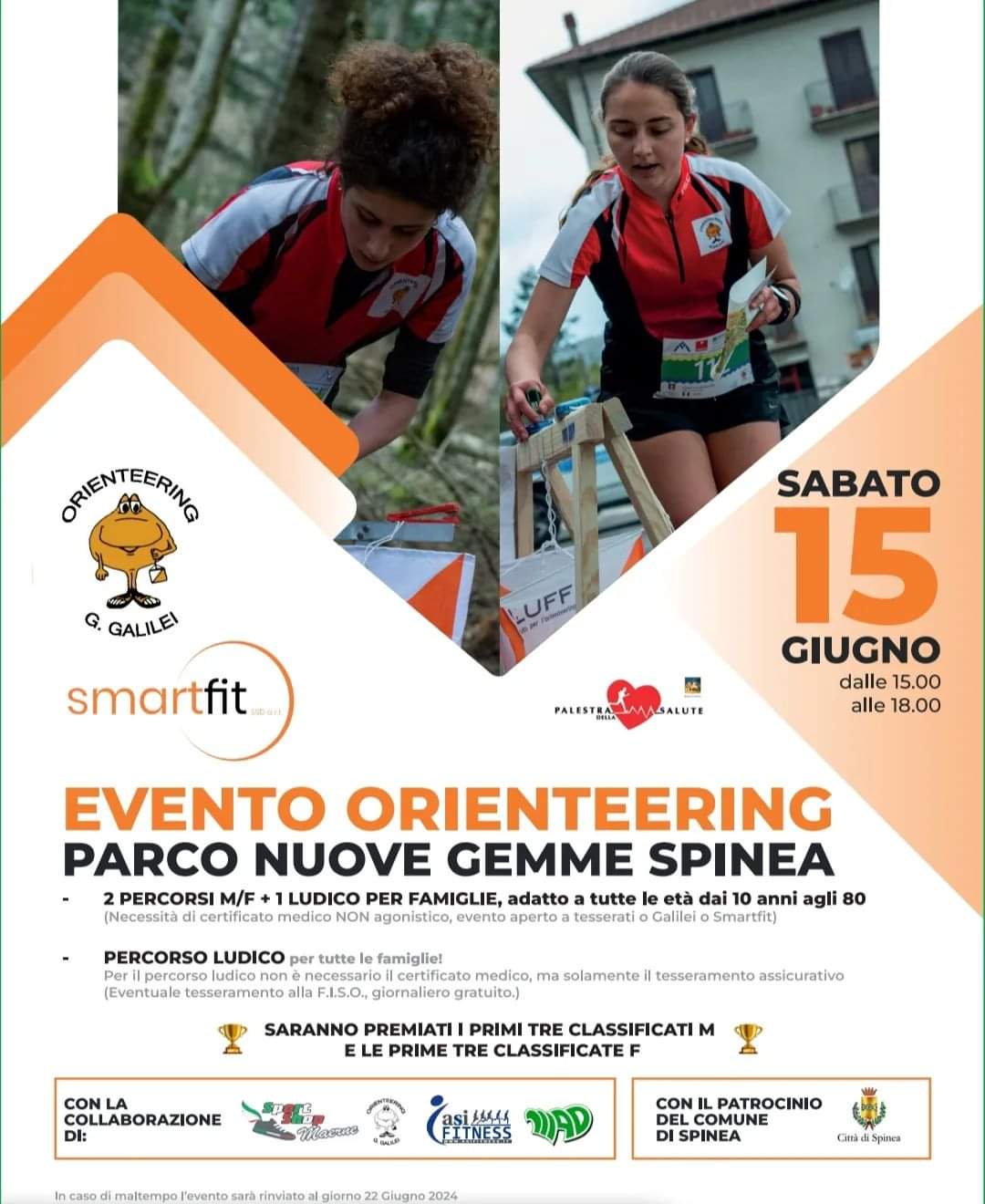 Sanno presenti due percorsi adatti a tesserati FISO M/F e un percorso ludico motorio. Iscrizioni possibilmente anticipate via mail o telefonicamente. In loco fino ad esaurimento cartine. PARCHEGGIO DEL PARCO NUOVE GEMME IN VIA ROSSIGNAGO. In caso di maltempo verrà spostato al 22/06.