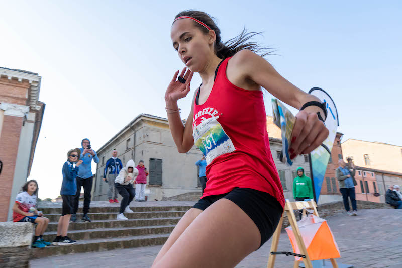 (Giulia Fignon, prima in W20, tra le calli del borgo emiliano. Foto Raffaello Ventura).
